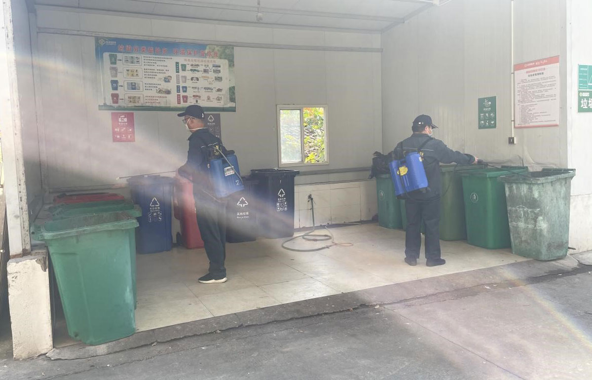 我司工(gōng)作(zuò)人員分(fēn)四組對整個範圍内進行消殺,一組使用(yòng)車(chē)載超低容量噴霧器對院内綠化進行滅蚊蠅消殺;二組對院内下水道、污水井、雨水井、排水溝等投放殺蟲顆粒殺滅蚊幼蟲;三組使用(yòng)背負式噴霧器對院内各衛生間、樓道、垃圾桶、垃圾站、綠化等進行滞留噴灑滅蚊蠅蟑;四組對院内食堂、宿舍、辦(bàn)公(gōng)室等以投放殺蟑顆粒、點殺蟑膠餌等方式進行滅蟑螂處理(lǐ)。